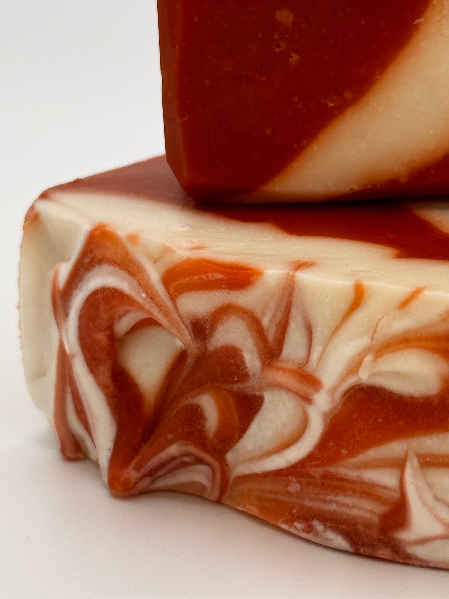Ingredients: Olive Oil, Sustainable Palm Oil, Coconut Oil, Water, Sodium Hydroxide, Fragrance Oil, Mica Powder